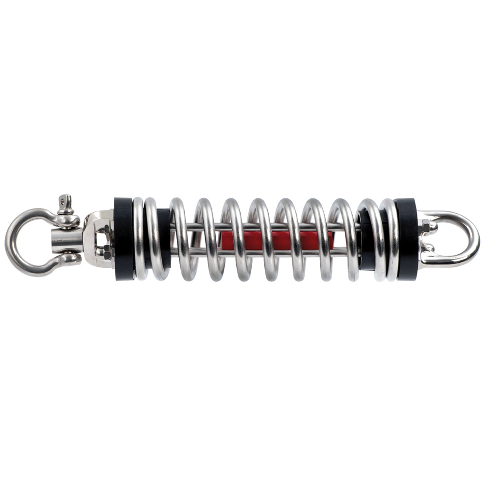 The Cardan system, thanks to a rotation on stainless steel spheres with an articulated head, allows the spring to work at its best regardless of the angle of traction exerted by the boat in its movements, and prevents it from breaking due to torsion. It's already equipped with suitable shackles for a perfect installation