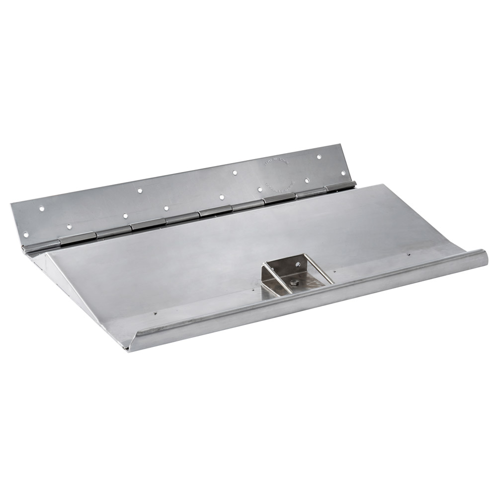 Stainless steel boxed trim tabs with integral hinge to plates not reported.